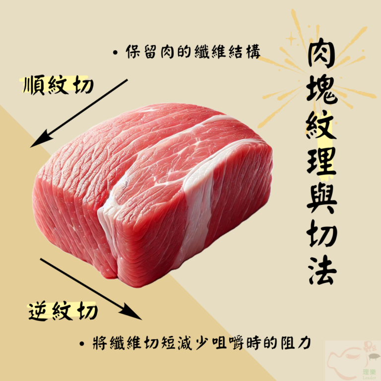 肉塊紋理的切法切肉時,掌握紋理方向是關鍵!肉的紋理指的是肌肉纖維的排列方向,這直接影響料理的口感。逆紋切(垂直於紋理方向)是將纖維切短,讓肉塊更容易咀嚼;順紋切(沿著紋理方向)則保留纖維的完整性,讓肉更有嚼勁。選擇正確的切法,不僅讓烹調事半功倍,還能讓每一口都充滿驚喜!