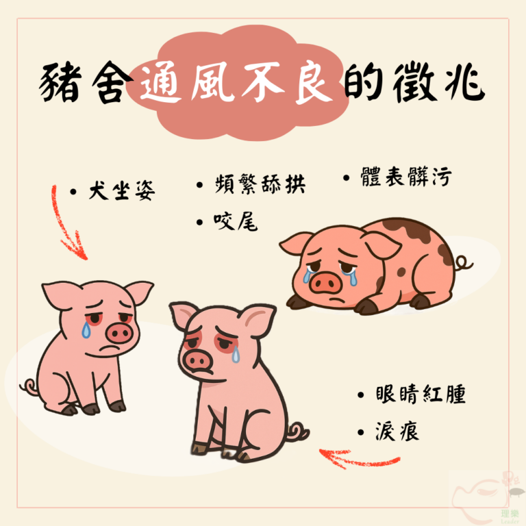 豬隻是否住得舒適,其實從行為就能看出端倪。當通風不良時,常見徵兆包括犬坐姿、頻繁舔拱與咬尾等刻板行為。若空氣中氨氣與二氧化碳累積,豬則可能出現眼睛紅腫、淚痕及體表髒污。調整通風設定時,不應只依賴機械參數設定,更要觀察豬隻本身與環境,並實際走入豬舍,觀察豬的躺臥姿勢、活動狀態以及是否有不適表現,並留意空氣是否過於潮濕或有刺鼻氣味,這些感官上的觀察都是不可缺少的管理任務。
